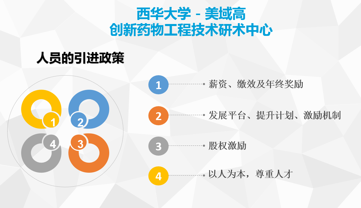 美域高與西華大學聯合組建創新藥物工程技術研究中心,以此為依托組建了20人左右的科研團隊。研發團隊核心成員以王春燕、劉治國等多位化學合成制藥專家為主,成員從事新藥與技術研究專業工作多年,具有豐富的藥品GMP管理知識,扎實的技術基礎和項目管理經驗,精通醫藥行業法律法規,有強大的項目運作、團隊管理經驗,對行業的發展現狀和前沿技術有深入的了解,承擔國家、省部級科研項目多項,積累了豐富的藥物研究成果。